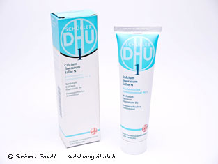 Die Biochemie DHU 1 Calcium fluoratum N D4 Salbe wird zur Pflege von reiferer und rissiger Haut und zur Narbenpflege angewendet. Die Salbe enthaelt den homoeopathischen Wirkstoff Calciumfluorid. Selbst verhaertete Narben nach Operationen werden spuerbar weicher. Schwangerschaftsstreifen koennen durch eine regelmaessige Anwendung waehrend der Schwangerschaft vermieden werden. Das Gewebe bleibt elastischer und die Haut wird straffer. Die Biochemie DHU 1 Calcium fluoratum N D4 Salbe kann zusaetzlich auch Krampfadern und Besenreisern vorbeugen.
