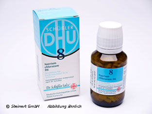 Die Biochemie DHU 8 Natrium chloratum D6 Tabletten werden zur natuerlichen Regelung des Fluessigkeitshaushaltes des Koerpers angewendet. Die Tabletten enthalten Natriumchlorid in einer homoeopathischen Verduennung. Bei einem Mangel an Natriumchlorid kommt es haeufig zu einer koerperlichen Schwaeche und zu Muedigkeit. Ausserdem koennen Oedeme, trockene Haut und Verstopfungen auftreten. Durch das Natriumchlorid werden die Naehrstoffe in die Zellen gebracht, wodurch Funktionsstoerungen verhindert werden koennen. Die Biochemie DHU 8 Natrium chloratum D6 Tabletten zeigen ausserdem eine sehr gute Wirkung in der Behandlung von Schnupfen.
