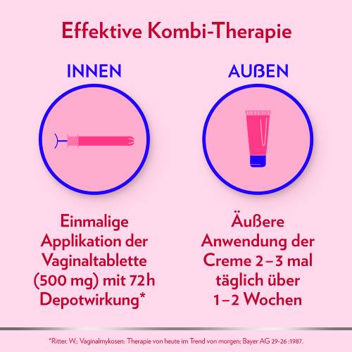 · praktische Kombination aus nur einer Vaginaltablette für den inneren und Creme für den äußeren Scheidenbereich