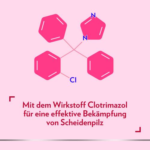 Anwendungsgebiete Kombipackungen: Bei infektiösem Ausfluss, verursacht durch Hefepilze; Entzündungen der Scheide und Schamlippen durch Pilze - meist Hefepilze der Gattung Candida - sowie überlagernde Infektionen (Superinfektionen) mit Clotrimazol-empfindlichen Bakterien.
