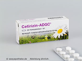 Die Cetirizin ADGC Filmtabletten werden zur symptomatischen Behandlung von allergischen Reaktionen des Körpers angewendet. Die Filmtabletten enthalten den antiallergischen Wirkstoff Cetirizin. ZU einer allergischen Reaktion kommt es durch die Ausschüttung des Botenstoffes Histamin, wodurch es zu einer Erweiterung der feinen Blutgefäße kommt und Juckreiz, Rötungen, Schwellungen und Schmerzen entstehen. Der enthaltene Wirkstoff blockiert das Histamin, so dass die allergischen Beschwerden gelindert werden. Die Cetirizin ADGC Filmtabletten sorgen dafür, dass sich die typischen Allergie Symptome bessern.