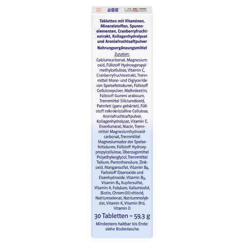 • zusätzlich mit Cranberryextrakt, Kollagenhydrolysat und Aroniasaftpulver