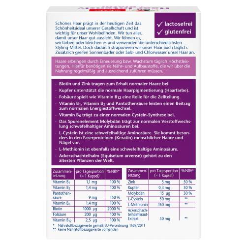 - Biotin + Zink als Beitrag zum Erhalt normaler Haare
