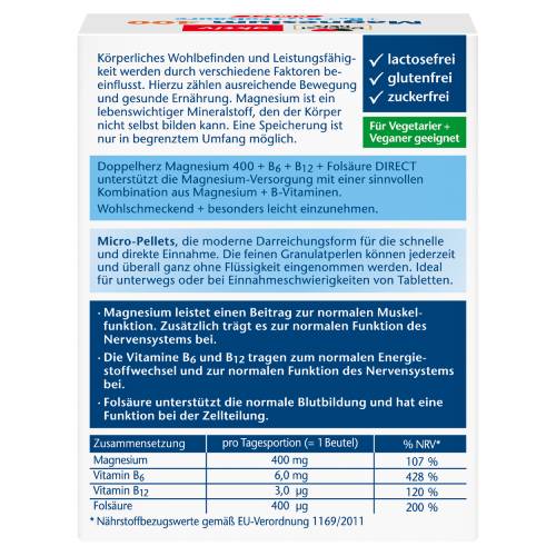 Magnesium 400 + B6 + B12 + Folsäure DIRECT