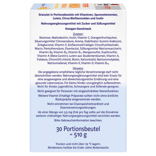 (Vitamin C, Vitamin D, Zink, Eisen, Folsäure, Kupfer, Selen, Vitamin A, Vitamin B6, Vitamin B12) - zum Schutz der Zellen vor oxidativem Stress