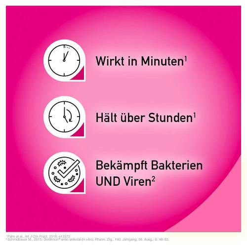 Dorithricin wirkt in Minuten, hält über Stunden und bekämpft Bakterien und Viren.