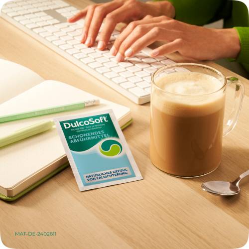 DulcoSoft® Pulver mit Stuhlweichmacher-Effekt sorgt für eine schonende Erleichterung bei hartem Stuhlgang und Verstopfung. Es erleichtert einen regelmäßigen Stuhlgang, ohne plötzlichen Drang.