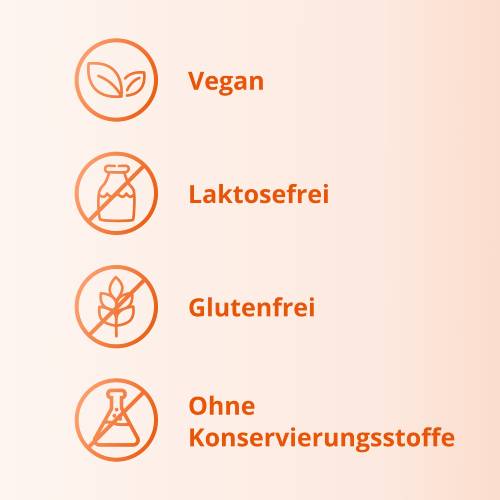 - Vegan, gluten- und laktosefrei, mit Orangen-Geschmack