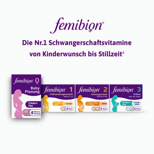 - JEDERZEIT STARTEN: Mit Femibion® 0 kann an jedem Tag des Zyklus begonnen werden, auch an fruchtbaren Tagen; Empfehlung: Beginn der Nahrungsergänzung durch Folsäure mind. 1 Monat vor Schwangerschaft
