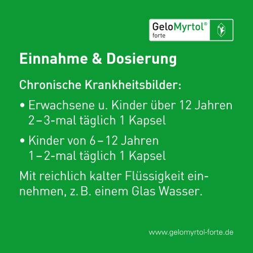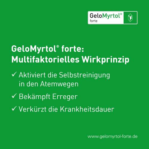 Pflichttexte GeloMyrtol® forte GeloMyrtol® forte. Anw.: Zur Schleimlösung u. Erleichterung des Abhustens b. akuter u. chron. Bronchitis. Zur Schleimlösung b. Entzündungen der Nasennebenhöhlen (Sinusitis). Z. Anw. b. Erwachsenen, Jugendlichen u.