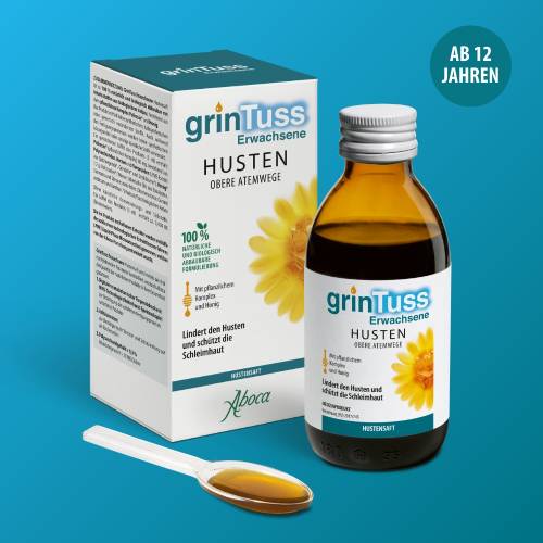 Grintuss Erwachsene Hustensaft ist ein zu 100% natürliches Produkt auf Basis von Honig und dem pflanzlichen Molekülkomplex Poliresin®. Dank seiner physiologischen Wirkung schützt er die oberen Atemwege und lindert deren Reizung. Grintuss ist ohne Alkohol und glutenfrei mit einem angenehmen Geschmack. Seine Inhaltstoffe stammen dabei aus nachhaltigem und biologischem Anbau. Grintuss schützt die Schleimhaut, indem es die Reizung beruhigt und die Schleimhaut befeuchtet.