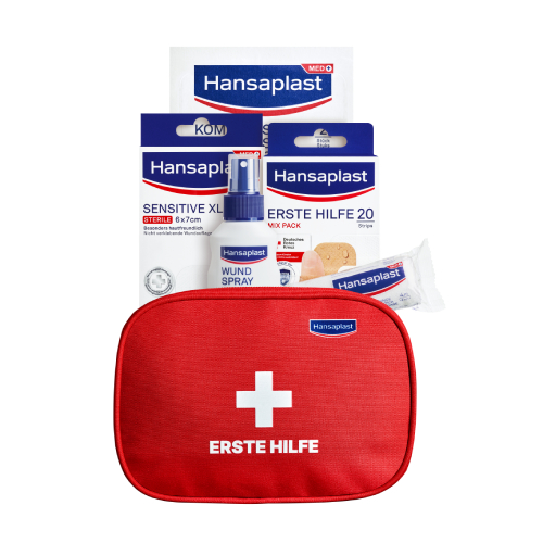 Das Hansaplast DRK Erste-Hilfe-Set mit einer kostenlosen, hochwertigen und wiederverwendbaren Erste-Hilfe-Tasche.