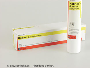 Die Kalinor Brausetabletten werden zur Behandlung und Vorbeugung eines Kalium-Mangels angewendet. Die Brausetabletten enthalten eine Kombination der Wirkstoffe Kaliumcitrat, Kaliumhydrogencarbonat und Citronensäure. Durch das Kalium werden der Wasserhaushalt des Körpers und das Gleichgewicht zwischen Säuren und Basen geregelt. Der Herzmuskel reagiert besonders empfindlich auf Schwankungen des Kaliumspiegels. Bei einem Kalium-Mangel kann es unter anderem zu einer Muskelschwäche und zu Störungen bei der Weiterleitung von Nervensignalen kommen. Die Kalinor Brausetabletten sind zusätzlich in der Lage die Bildung von Blasen- und Nierensteinen zu hemmen.