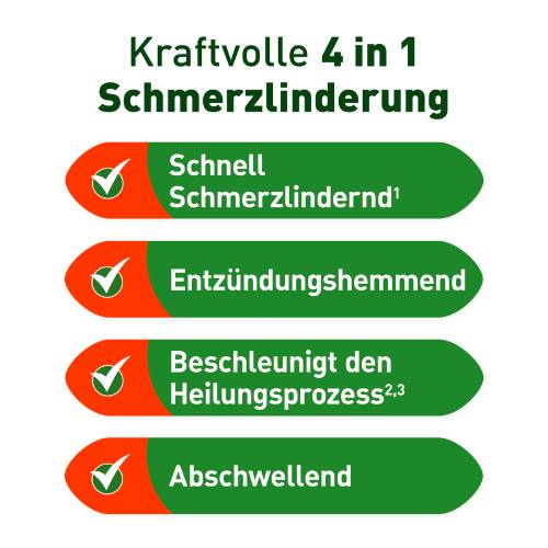 Ohne ärztlichen Rat sollten Sie das Arzneimittel nicht länger als 3-4 Tage anwenden, wenn keine Besserung der Beschwerden nach dieser Zeit eingetreten ist. Die Anwendungsdauer richtet sich nach Art der Beschwerde und/oder Dauer der Erkrankung und wird deshalb nur von Ihrem Arzt bestimmt. Das Arzneimittel sollte bei Jugendlichen ab 12 Jahren nicht länger als 1 Woche angewendet werden. Bei Erwachsenen ist in der Regel eine Anwendungsdauer von 10 Tagen bei Rückenschmerzen, Verstauchungen, Prellungen und Zerrungen ausreichend; bei Kniegelenksarthrose kann eine Anwendungsdauer bis zu 3 Wochen erforderlich sein.