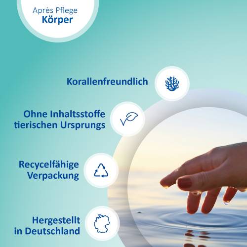 Die Après Pflege-Lotion kühlt sofort angenehm nach dem Auftragen und spendet Ihrer Haut Feuchtigkeit.