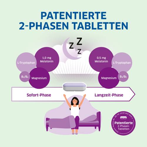 *Melatonin trägt dazu bei, die Einschlafzeit zu verkürzen, wenn kurz vor dem Schlafengehen 1 mg aufgenommen wird.