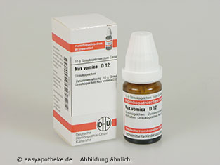 Nux vomika D12 ist ein homöopathisches Mittel und wird überwiegend zur Behandlung von Beschwerden im Magen-Darm-Trakt angewandt. Außerdem wirkt Nux Vomica am zentralen und vegetativen Nervensystem. Nux vomica enthält Strychnin, welches in niedriger Dosierung harntreibend und verdauungsfördernd wirkt. Auch bei Brechreiz ist Nux vomica als Mittel der Wahl angezeigt. Bei Verdauungsstörungen verbunden mit erfolglosem Stuhldrang und Brechreiz kann Nux vomica ebenfalls sehr zur Linderung der Beschwerden beitragen.