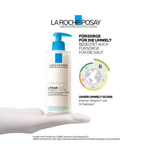 Die LIPIKAR Syndet AP+ Dusch-Creme von La Roche-Posay ist eine Körperreinigung ohne Duftstoffe. Das sanft reinigende Cremegel eignet sich als Basispflege zum Duschen bei zu Neurodermitis neigender, empfindlicher und sehr trockener Haut. Durch die rückfettende Eigenschaft wirkt die LIPIKAR Syndet AP+ Dusch-Creme hautberuhigend und juckreizlindernd. Es ist für Säuglinge, Kinder und Erwachsene geeignet. Angereichert mit Niacinamid und dem Wirkstoff Aqua Posae Filiformis lindert LIPIKAR Syndet AP+ den Juckreiz bereits unter der Dusche. Die in der Formulierung enthaltene Sheabutter pflegt empfindliche Haut zusätzlich.