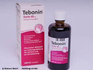 Die Tebonin forte 40 mg Lösung wird zur natürlichen, unterstützenden Behandlung ein hirnorganisch bedingten Demenz angewendet. Die Lösung enthält den pflanzlichen Wirkstoff Ginkgo. Ginkgoblätter enthalten einen hohen Gehalt an Flavonoiden und Terpenen. Durch den Wirkstoff kommt es zu einer Stimulierung der Bindungsstellen für bestimmte Botenstoffe im Gehirn, wodurch es zu einer Verbesserung der Reizweiterleitung kommt. Die Tebonin forte 40 mg Lösung kann die Gedächtnisleistung und das Lernvermögen steigern und für eine Abnahme von Gleichgewichtsstörungen sorgen.