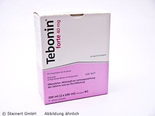 Die Tebonin forte 40 mg Lösung wird zur Behandlung von Beschwerden bei durch altersbedingte Arterienverengung hirnorganisch bedingten Leistungsstörungen angewendet. Die Lösung enthält einen Trockenextrakt aus Ginkgo biloba Blättern. Bei arteriosklerotischen Durchblutungsstörungen kann es unter anderem zu einer nachlassenden geistigen Leistungsfähigkeit kommen. Der enthaltene Wirkstoff verbessert die Fließeigenschaften des Blutes, wodurch Durchblutungsstörungen vorgebeugt wird. Die Tebonin forte 40 mg Lösung hilft bei einem Rückgang der Gedächtnisleistung, Merkfähigkeit und Konzentration, Kopfschmerzen, Schwindelgefühle, Ohrensausen.