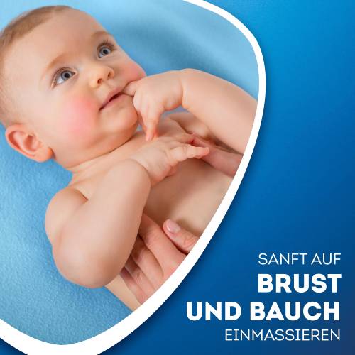 - WICK BabyBalsam wird sanft auf Brust und Bauch des Babys einmassiert.