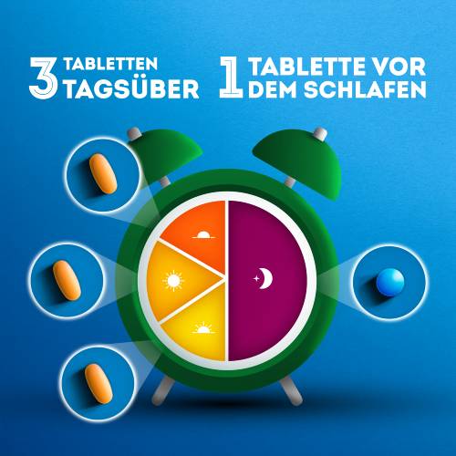 - Spezielles Erkältungsduo für effektive Linderung von Erkältungssymptomen am Tag und in der Nacht: 3 gelbe Tabletten für den Tag und eine blaue Tablette für die Nacht"