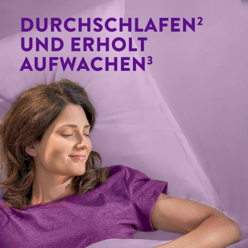 ² Mit pflanzlichen Inhaltsstoffen: 160 mg Baldrianextrakt und 80 mg Zitronenmelissenextrakt, die beim Ein- und Durchschlafen helfen.
